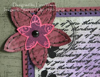This is the first card I created with my new Fresh Cuts goodies. I thought the "thinking of you" script in the background of this collage stamp made it perfect for the sympathy card I needed to make for a friend. I started by embossing the image in black on white card stock. Then I sponged the background using Artichoke, Bravo Burgundy & Eggplant inks.